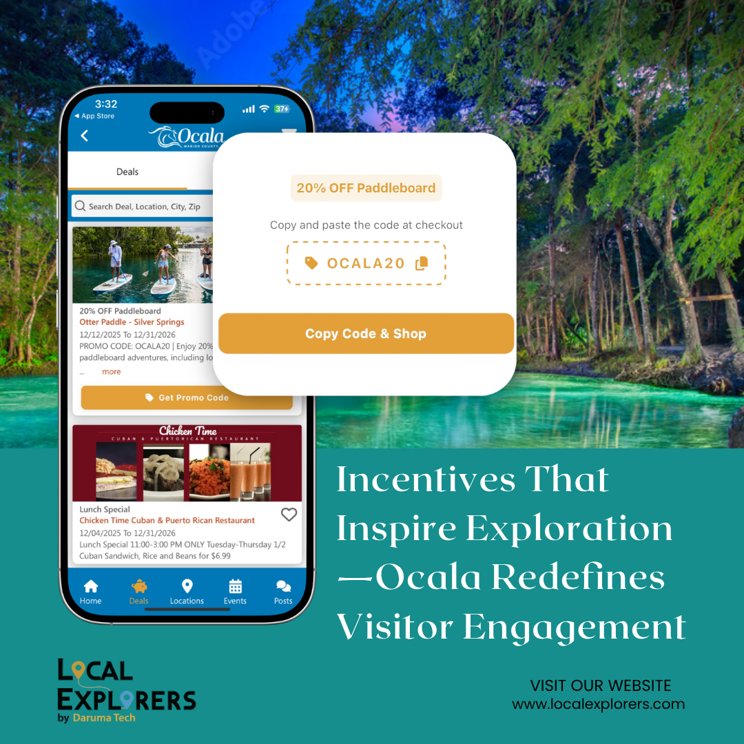 OCALA, FLA — April 15,2026 — Local Explorers, from Daruma Tech, are creators of award-winning mobile apps for trade guilds and destination marketing organizations (DMOs), has introduced a powerful and flexible promo code feature to its already rich app platform. The new feature is already in use on the OcalaMarion Travel Guide app, developed by Local Explorers for Ocala/Marion County Visitors and Convention Bureau (OcalaMarion).